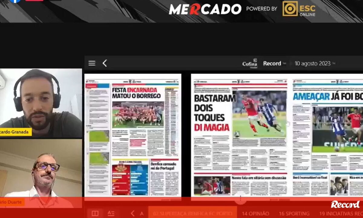 10 agosto 2023 - 10:39 Mercado Record: análise às exibições dos reforços de Benfica e FC Porto e Hjulmand a caminho do Sporting ... × Funcionalidade exclusiva para assinantes Record Premium Assine para partilhar E usufrua de todas as vantagens de ser assinante Os jornalistas Ricardo Granada e Mário Duarte abordam as notícias do mercado de transferências que marcam a manhã desta quinta-feira Deixe o seu comentário Para poder guardar esta notícia deverá efectuar login. Caso não esteja registado no site do Record, efectue o seu registo gratuito. 10.08.2023 Mercado Record: análise às exibições dos reforços de Benfica e FC Porto e Hjulmand a caminho do Sporting Deixe o seu comentário
