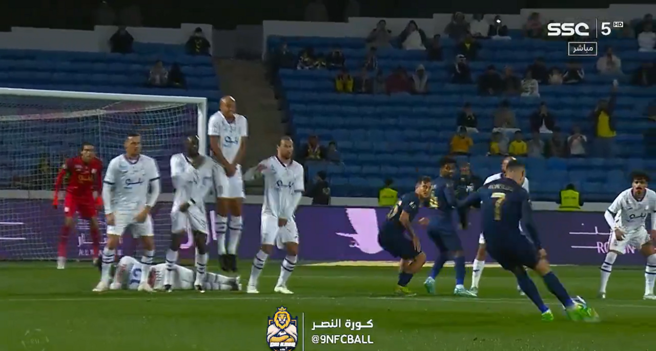 Nove minutos depois de abrir o marcador de livre direto, Cristiano Ronaldo chegou ao 'bis' frente ao Abha... com novo remate certeiro a partir de um lance de bola parada. O craque português do Al Nassr aproveitou uma brecha da barreira para trair o guarda-redes adversário e colocar assim a equipa de Luís Castro e Otávio a vencer por 2-0.