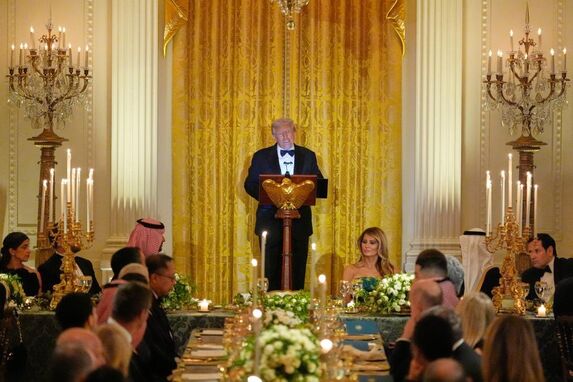 Donald Trump e Melania foram cumprimentados por Mohammad bin Salman antes do início oficial do jantar.