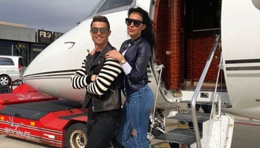 Já ontem CR7 havia divulgado uma imagem ao lado da namorada junto ao avião do craque.