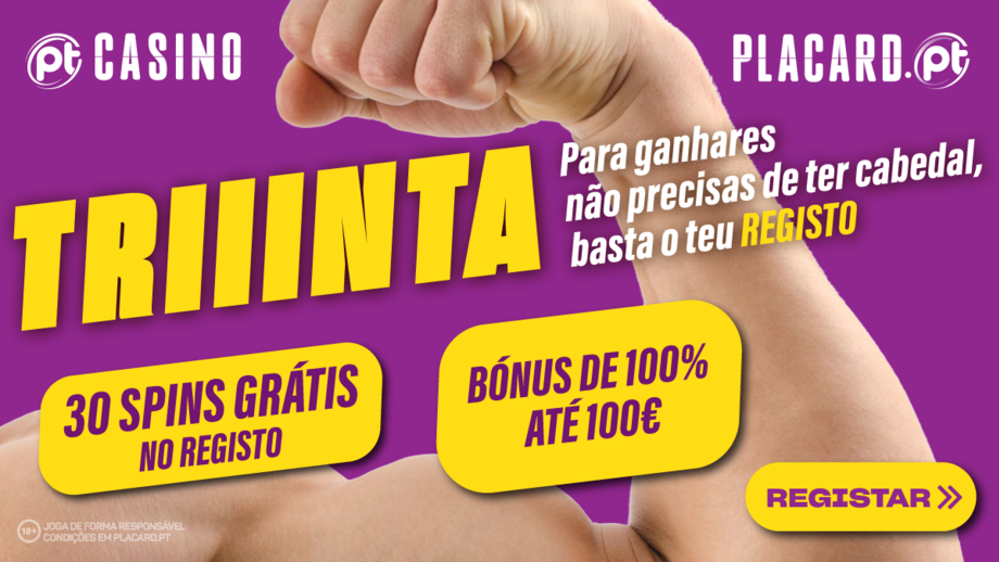 30 é o número mágico na oferta de boas-vindas do Placard.pt. Assim que efetuarem o registo, os novos jogadores do Placard.pt devem efetuar um depósito mínimo de 5€ e validar a conta. Assim que concluídos estes passos, irão receber 30 jogadas grátis e terão ainda acesso a um bónus de depósito que lhes dará 100% do valor depositado até 100€. Os jogadores ainda recebem uma freebet de 1€ como parte desta campanha. Esta campanha está disponível durante 10 dias após o registo.