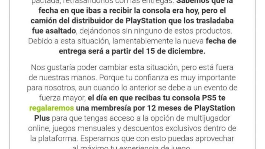 A empresa responsável pela distribuição do equipamento no Chile enviou um e-mail a todos aqueles que compraram a consola antecipadamente e, segundo o documento que foi posto a circular nas redes sociais, a PlayStation 5 será entregue até dia 15 de dezembro.