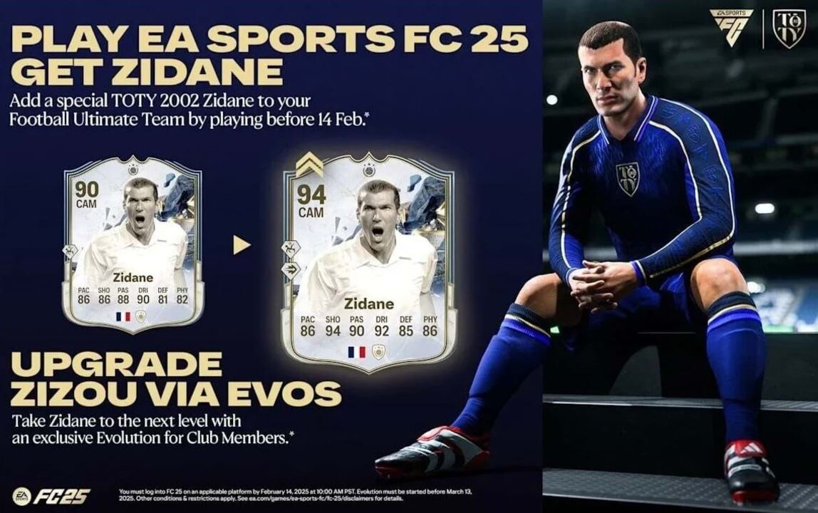 É oficial! A EA Sports revelou esta sexta-feira que todos os utilizadores de FC25 vão receber uma versão especial do Ícone Zinedine Zidane TOTY 2002, com um valor geral de 90.