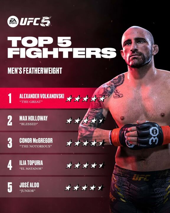 Men’s Featherweight: Alexander Volkanovski (5 estrelas de 5)