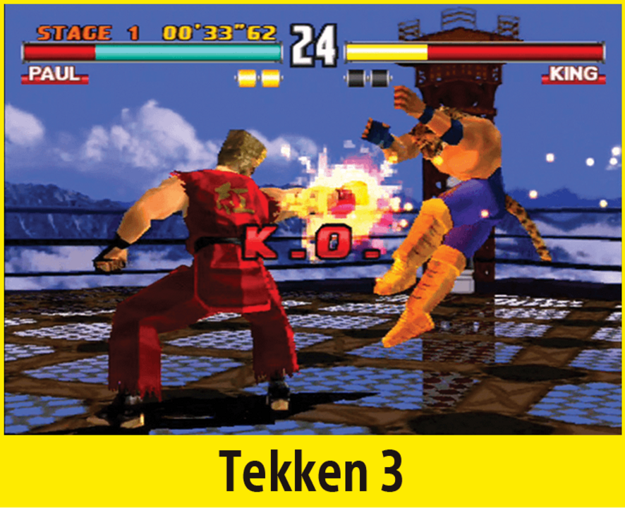Na mesma onda está Tekken 3. É o tipo de jogo que não passa de moda e com gráficos bem aceitáveis, que a dois jogadores se tornam facilmente viciante.