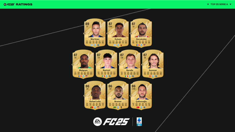 A EA SPORTS revelou, esta sexta-feira, os melhores ratings dos jogadores da Serie A, apresentando um primeiro olhar para o conjunto abrangente de talentos e estatísticas no EA SPORTS FC 25.