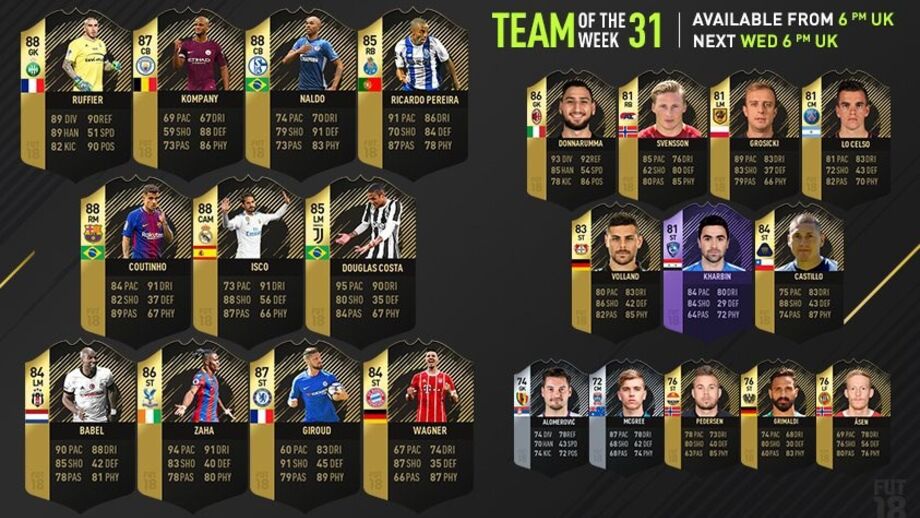 A EA Sports revelou a 31.ª Equipa da Semana de FIFA Ultimate Team. O internacional português Ricardo Pereira, do FC Porto, é o único jogador da Liga portuguesa presente na formação.