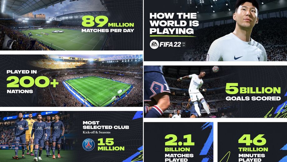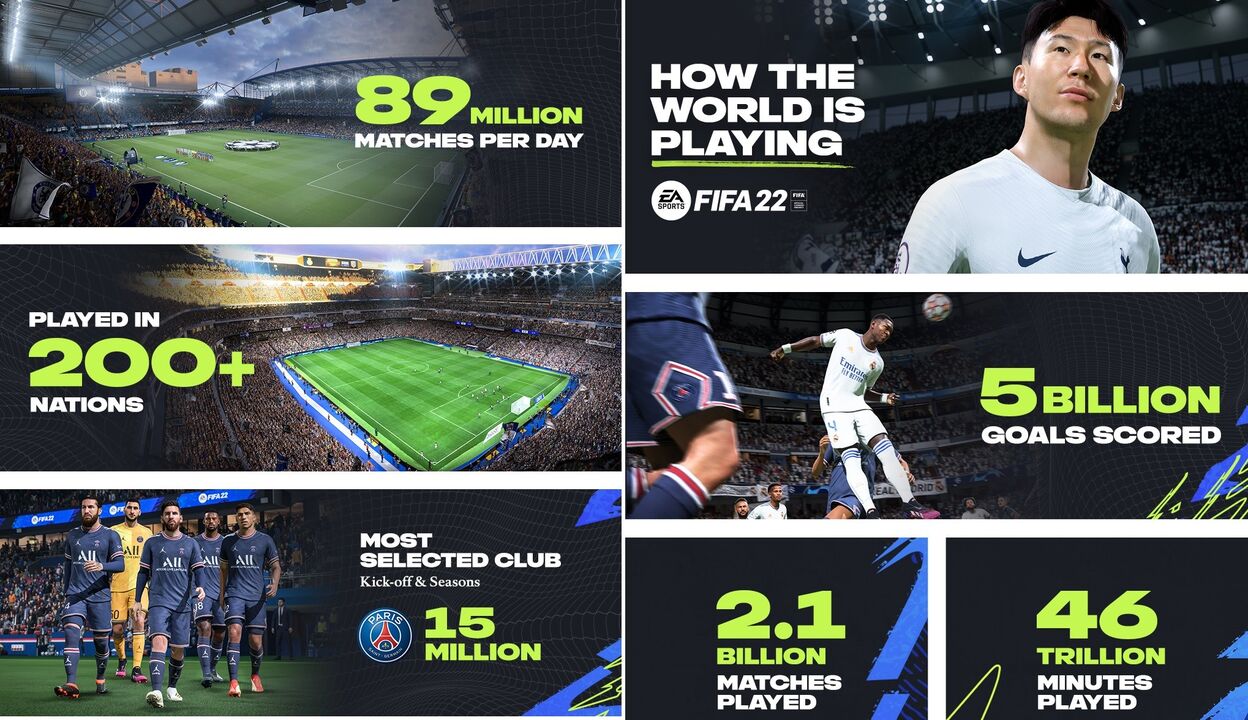 A Electronic Arts Inc. celebrou 22 dias desde o lançamento da EA SPORTS FIFA 22. O título deste ano já foi disputado em mais de 200 nações em todo o mundo, com uma média de 89 milhões de jogos a serem disputados por dia, totalizando 2,1 mil milhões de jogos e 46 triliões de minutos jogados no total - o equivalente a mais de 87,8 milhões de anos de gameplay. Até agora, já foram marcados mais de 5 mil milhões de golos.