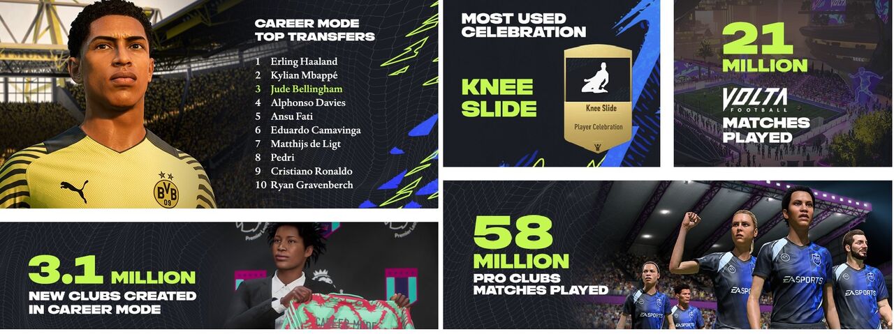 No Modo Carreira, a EA SPORTS FIFA 22 viu 3,1 milhões de novos clubes personalizados criados através do Create Your Club com 2,1 milhões de jogadores envolvidos no modo.