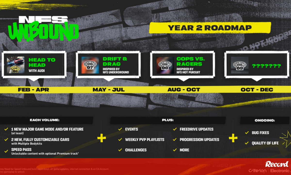 Neste segundo ano de serviço ao vivo, o NFS Unbound está comprometido em oferecer a melhor experiência NFS aos seus fãs. A equipa está a adotar uma abordagem de melhoria contínua, e procura melhorar a experiência de jogo ao longo do ano com base no feedback dos jogadores.