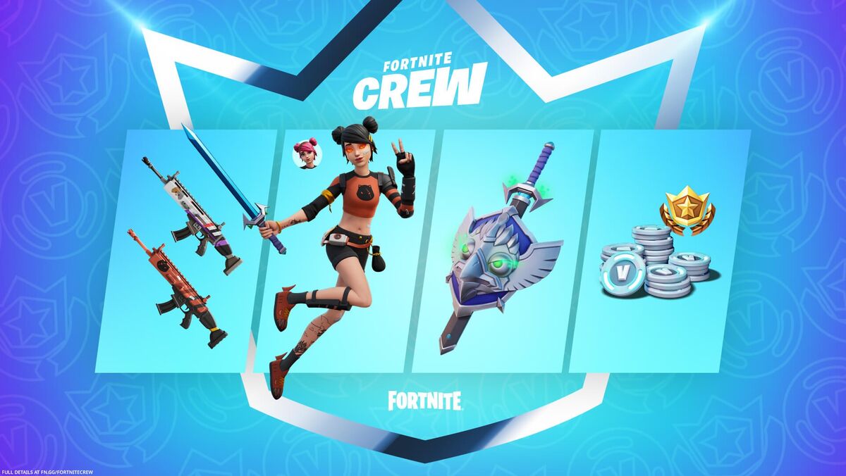 Os subscritores do Fortnite Crew em agosto terão acesso ao passe de batalha da temporada atual (se o passe de batalhe tiver sido adquirido antes da subscrição do Fortnite Crew, os utilizadores irão receber um reembolso único de 950 V-Bucks nas suas contas) e desfrutarão de 1.000 V-Bucks adicionais todos os meses, com os quais podem adquirir elementos da loja do Fortnite. Os jogadores podem subscrever o pacote Fortnite Crew no jogo na Loja de Itens ou no separador do Passe de Batalha.