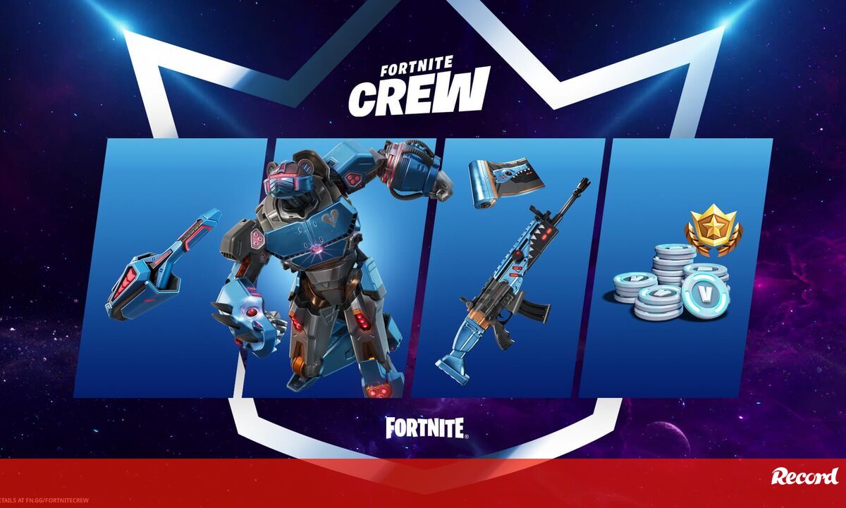O Pacote Fortnite Crew deste mês inclui ainda, entre outras coisas, 1000 V-Bucks (moeda do jogo) e o Battle Pass da temporada atual.