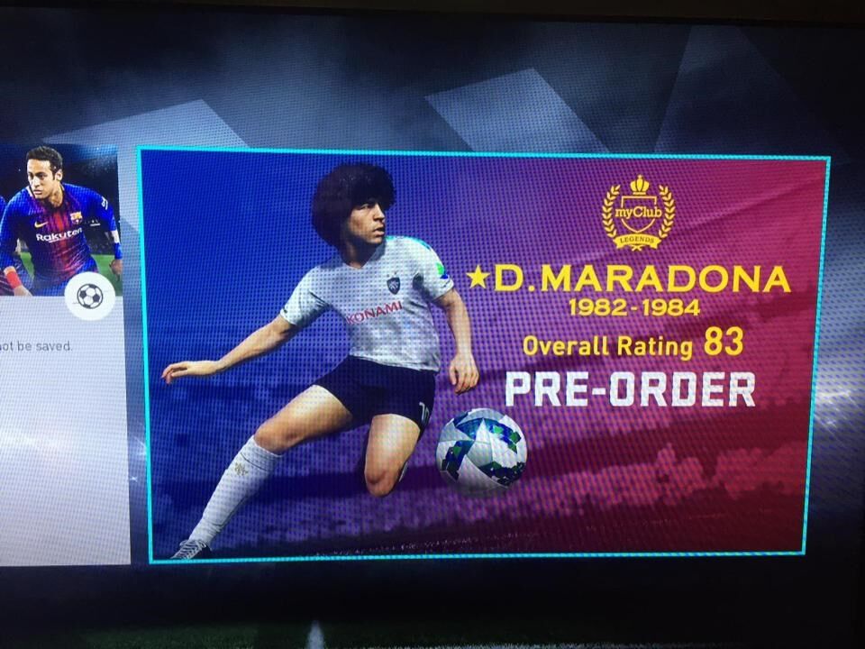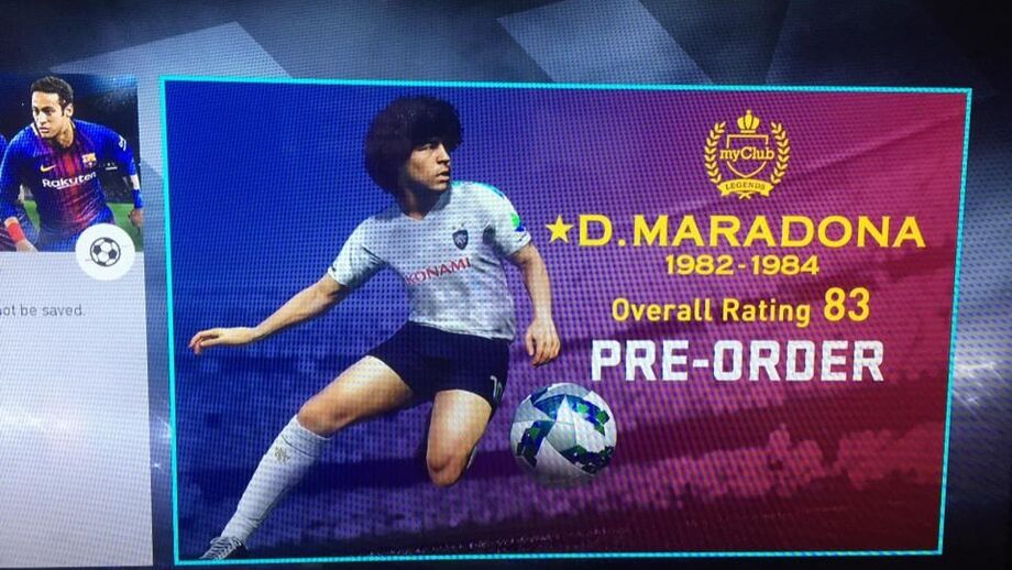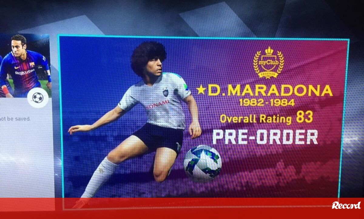 Esta é a imagem que está a deixar a comunidade em polvorosa. Logo no painel inicial da demo do Pro Evolution Soccer 2018, que já testámos, surge a promoção ao "pre-order" do jogo com a ilustração de Diego Armando Maradona nos seus tempos áureos. Contudo, o facto de estar associado a uma nota de 83 fez com que muitos utilizadores levassem as mãos à cabeça.