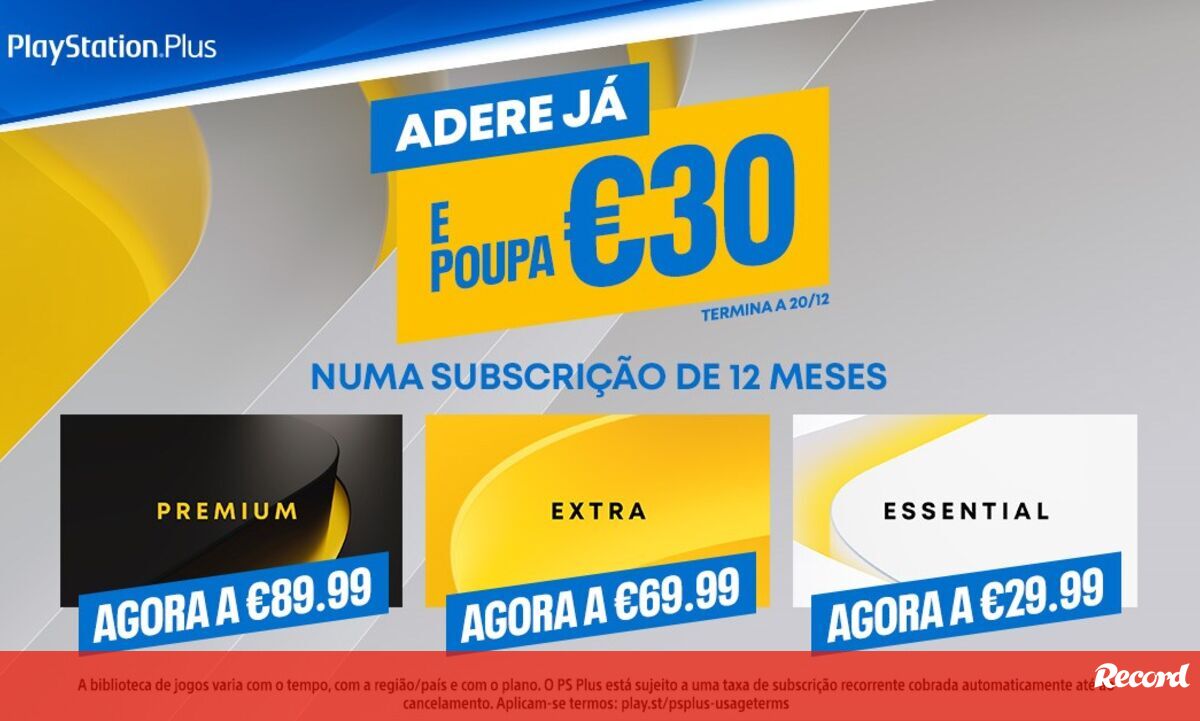 PlayStation®Plus Essential: inclui dois jogos a transferir por mês sem custos adicionais; descontos exclusivos na PlayStation®Store; armazenamento na nuvem para as gravações de jogos e acesso ao modo multijogador online. Durante esta campanha, a subscrição de 12 meses estará disponível por apenas 29,99€ em vez dos habituais 59,99€;