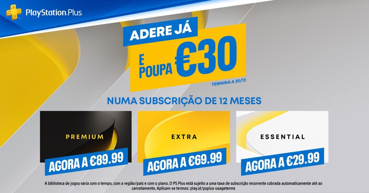 Isto significa que até ao próximo dia 20, todos aqueles que comprarem uma subscrição anual do PlayStation®Plus Essential, do PlayStation®Plus Extra ou do PlayStation®Plus Premium, usufruirão de um desconto de 30€. Esta campanha é válida apenas na PlayStation®Store, no entanto os jogadores poderão também aproveitar a promoção comprando os carregamentos de carteira disponíveis nos pontos de venda habituais, redimindo-os depois na compra das subscrições do PlayStation®Plus na PlayStation®Store.