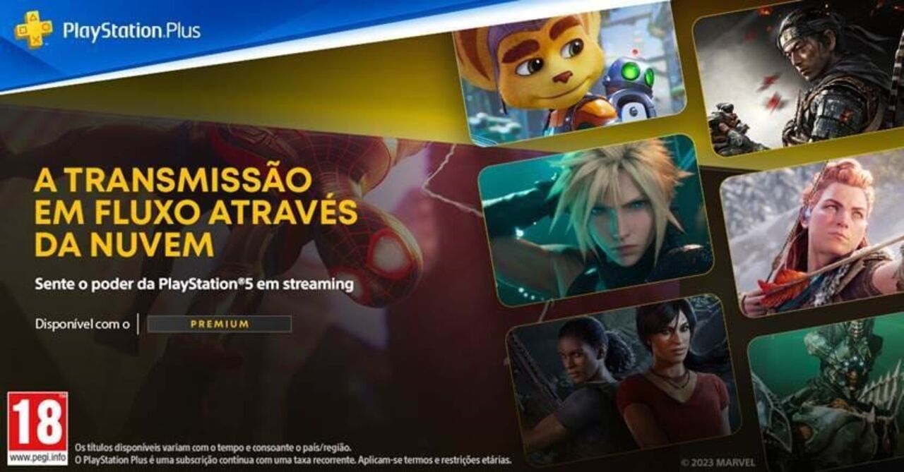 Os subscritores do PlayStation®Plus Premium terão acesso ao streaming de jogos através da nuvem para os títulos digitais do PlayStation®Plus compatíveis - do catálogo de jogos* e avaliações de jogos* do PlayStation®Plus, bem como para os títulos compatíveis da biblioteca de jogos PlayStation®5 que possuam.