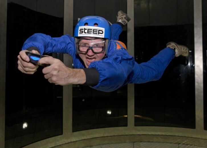 Edwards testou o jogo... num túnel de vento vertical. Algo que definitivamente não é para todos.