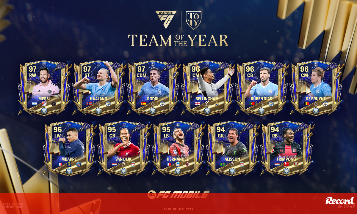 A decorrer como um evento de cinco semanas até 29 de fevereiro, os jogadores do EA SPORTS FC Mobile podem construir a sua Ultimate Team com os melhores do ano, incluindo Erling Haaland, Rúben Dias, Rodri, e Lionel Messi. Vê mais abaixo a lista completa da Team of The Year masculina do EA SPORTS FC.
