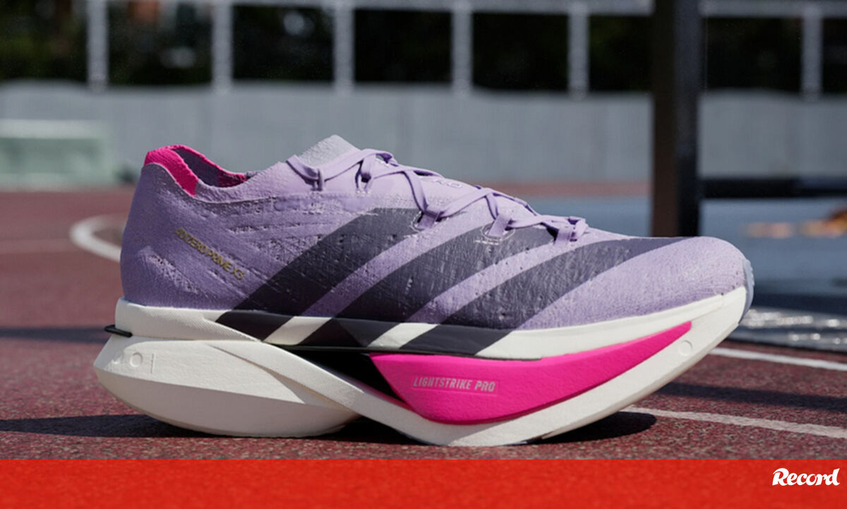 É assim que o Priberam define a palavra “ilegal”. O adjetivo comummente associado a estas adidas Adizero Prime X3 Strung. A razão? Duas bem claras: a altura máxima da meia-sola e, também, o facto de haver duas placas de fibra de carbono nessa zona. Qualquer uma delas valeria desde logo o selo de ‘banido‘ de competição. Se são as duas… pior ainda.