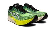 Um ano passou, chegou a segunda versão e, agora sim, vamos falar de algo bem diferente. Visualmente... a diferença é da noite para o dia. As MagicSpeed já não são as sapatilhas baixinhas do passado. São mais um modelo bem à imagem das MetaSpeed. O que, parece-nos, sempre foi a ideia da ASICS. E com essa mudança de perfil veio também um modelo mais responsivo, com maior amortecimento em comparação com o primeiro e uma maior sensação de retorno de energia. É mesmo uma diferença enorme do primeiro para o segundo modelo!