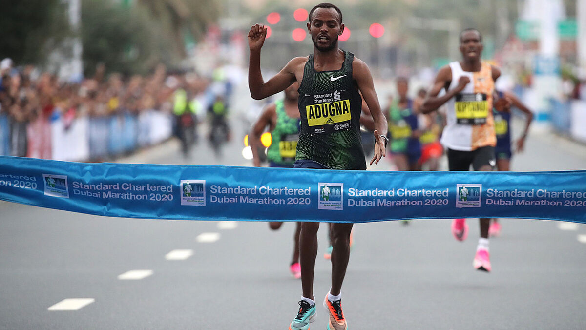 A promessa de novo recorde do percurso não foi cumprida - especialmente devido às elevadas temperaturas que se registaram à partida -, mas a verdade é que a Maratona do Dubai voltou esta sexta-feira a dar aos amantes do atletismo um final autenticamente impróprio para cardíacos. Num cenário mais digno de provas curtas do que propriamente de uma maratona, a prova foi discutida até aos últimos metros, com o desconhecido Olika Adugna Bikila a levar a melhor perante um pelotão com onze (!) corredores graças a um tempo final de 2:06:15 horas.