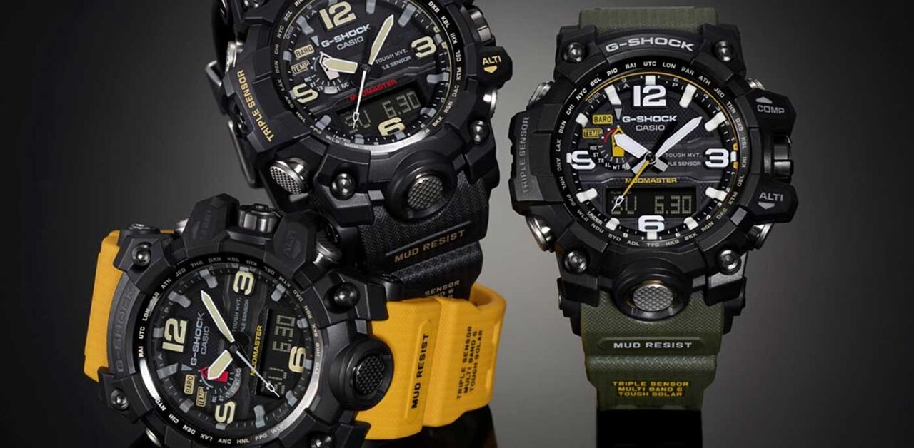Um relógio capaz de resistir a impactos e vibrações fortes, concebido paracontinuar a dar informação nos ambienbtes mais inóspitos? Só se pode estar a falar do ‘Mud Master’ da Casio, nome de código G-SHOCK GWG-1000, que, como a alcunha sugere, vive bem no meio do lodo. O design deste Casio caracteriza-se por ponteiros das horas e dos minutos de grandes dimensões, tal como a numeração, e um botão frontal que exprime a dureza destes relógios e ao mesmo tempo permite uma leitura prática e facilidade de utilização.