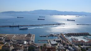 De administração inglesa e onde há um aeroporto que atravessa uma avenida automóvel