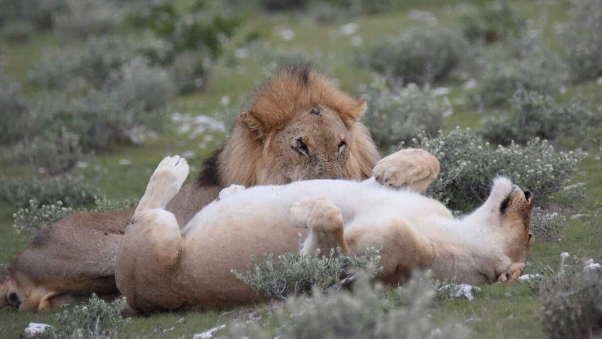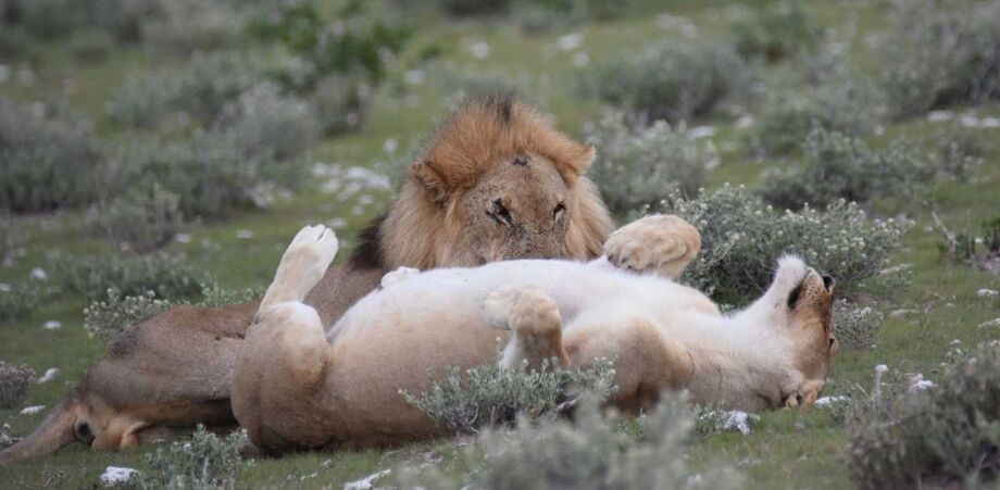 A meteorologia parecia melhorar e a chuva abrandara quando entrámos no Etosha, mas as primeiras horas foram decepcionantes, pois poucos animais vimos e aqueles que apareceram já eram «repetidos» - girafas, gnus, gazelas e até mesmo elefantes - já não eram encontros interessantes depois da passagem pelo Botswana. E nem mesmo o chacal que se atravessou à nossa frente mereceu destaque especial. Andávamos à «caça» de leões… mas estes não apareciam.