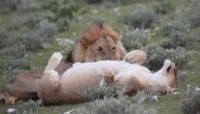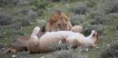 Fomos percorrendo o parque e já dávamos o tempo como perdido quando o Pedro questionou o motorista de um jipe carregado de turistas e dele veio uma dica que «salvaria» o dia: ali há leões. E havia. Um grupo de cinco, deitados tranquilamente à beira da picada, dormitando, fazendo a digestão da zebra que acabavam de liquidar e cujos restos (relativamente frescos) eram ainda visíveis. Deste grupo, um dos machos tentava cobrir uma fêmea mas de nada lhe valeu o «namoro»: a leoa não estava para ali virada… Mas o espectáculo foi sensacional. E o dia estava ganho… tinha valido a pena ir ao parque pois concluíramos a observação dos 5 maiores da selva e nem o salto que inadvertidamente demos e que atirou literalmente a Ana para o colo do Rui «ofendendo-lhe» uma costela, à Ana não ao Rui, estragou o dia.