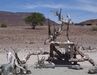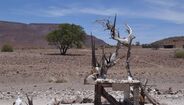 Dormimos em Okaukuejo (onde ocorreu um episódio curioso - a Ana, já na tenda, ouvindo ruídos estranhos perguntou: «Que raio anda aí?» E o Rui, com calma olímpica, respondeu-lhe: «Nada de especial. São apenas chacais!») e após termos avaliado todas as possibilidades e fazermos contas aos dias que restavam, optamos por seguir pela C38 até Outjo, apesar da pista ser mais "secundaria" que as secundárias e daí seguir quase em linha recta para a costa, concretamente até Torra Bay, onde ficaríamos acampados na praia. Passámos então por Khorixas, atravessámos a Floresta Petrificada, perto de Vrede, optando por um estradão ainda mais «pedregoso», mas que encurtava o caminho para a Costa dos Esqueletos. Valeu-nos um furo e uma troca de pneus que nos deu água pela barba – primeiro que descobríssemos uma chave de rodas decente…suámos as estopinhas e não só pelo calor que fazia.
