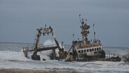 Prosseguimos viagem, no dia seguinte, manhã cedo, ao longo da costa, para Sul, aproximando-nos da caminhada final para Joburg. Mas não deixámos de ir ver os barcos encalhados – ou melhor, os restos que o mar bravio ainda não conseguiu destruir, a sensacional e mal-cheirosa baía onde se amontoam umas 250 mil focas; passámos pelo Cape Cross, cabo conhecido pelo nosso aventureiro de outrora de nome Diogo Cão, que ali arribou em 1486, fomos a Henties Bay – localidade onde se concentram muitos amantes do 4x4 que querem ir testar a sua perícia nas dunas onde ainda é permitido andar e onde, mais uma vez, não conseguimos encontrar peixe fresco -, demos um saltinho à velha mina de sal e acabámos o dia em Swakopmund.