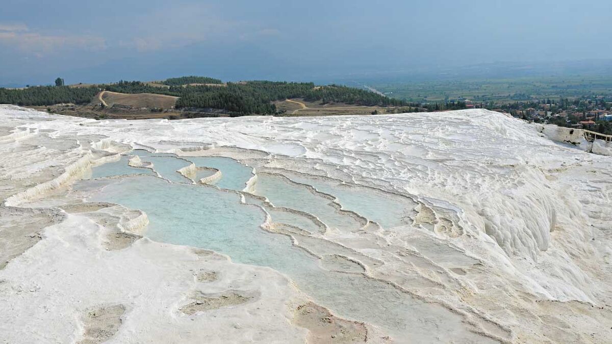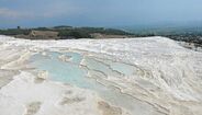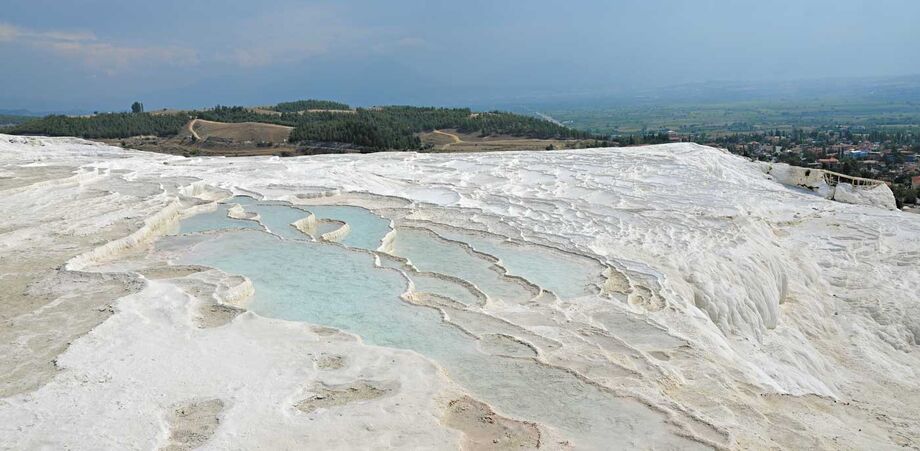 Chegar a esta região no sudoeste da Turquia não faz parte da lista de viagens mais diretas para quem sai de Portugal, mas vale muito a pena o tempo que se perde. A quase 600 quilómetros de Istambul, cidade mais turística da Turquia, Pammukale é uma maravilha da natureza. Tudo começa em nascentes de água mineral quente, situadas a quilómetros de profundidade e que, com o calcário que abunda na região, solidifica à superfície, formando os ‘degraus’ na montanha.